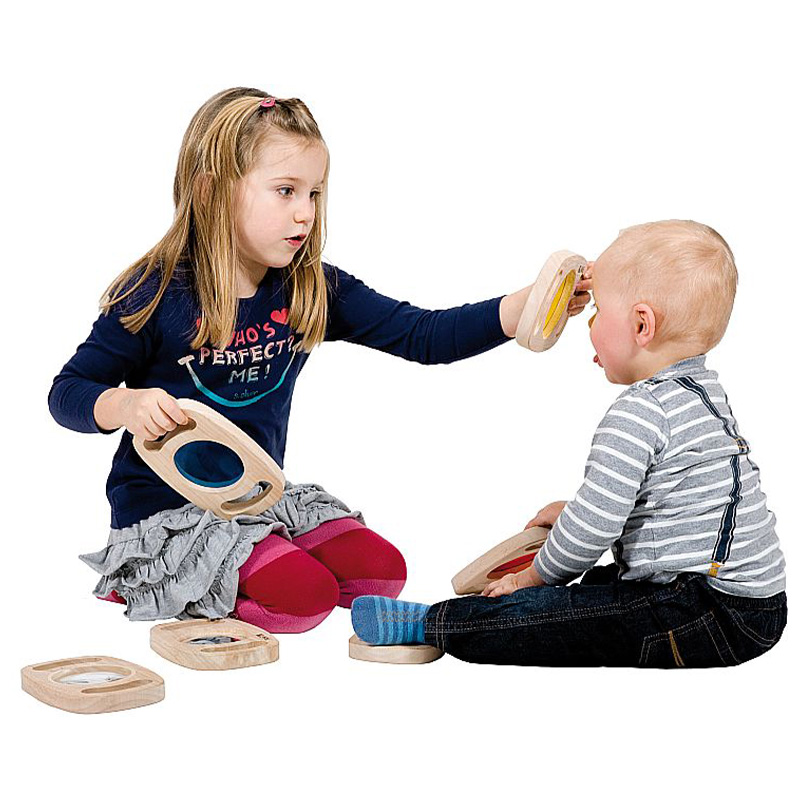 Abgerundet wird das Entdeckerfenster durch die drei Farbfilter in Gelb, Blau und Rot. Diese können auf die Rahmen gesteckt werden und verändern die Farben und die Helligkeit der Objekte. Die kleinen Forscherinnen und Forscher können auf diese Weise die Welt um sich herum auf spielerische Art und Weise erforschen und entdecken.