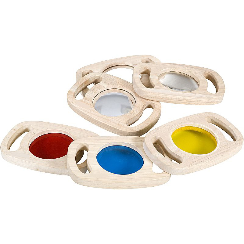 Zum Set gehören ein Konvex- und ein Konkavspiegel, die unterschiedliche Vergrößerungen erzeugen. Auch ein Vergrößerungsglas und ein Tafelspiegel sind im Set enthalten. Diese Rahmen ermöglichen es den Kindern, kleine Dinge ganz groß zu sehen und ihre Umgebung aus einer anderen Perspektive zu betrachten.