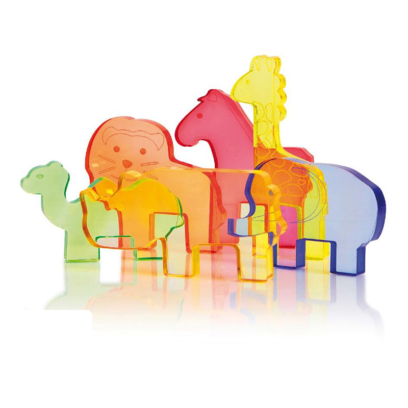 … mit diesen äußerst fesselnden Figuren (Löwe, Giraffe, Zebra, Elefant, Nashorn und Kamel). Ob mit den Acryltieren auf dem Trockenen, im Dschungel oder im schlammigen Wasser – der Spaß ist garantiert. Verwende die durchsichtigen Tiere in Kombination mit einer Leuchtplatte, um die volle Wirkung der leuchtenden Farben zu erzielen. Erweitere den Spielspaß mit unseren weiteren lichtdurchlässigen Spielsets. Die Figuren können auch als Lernmittel verwendet werden, um Kindern etwas über das Leben wilder Tiere beizubringen.