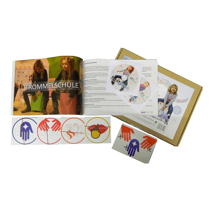 Speziell für den praxisnahen Einsatz in Kindergärten, Schulen, Musikgruppen sowie Einzelunterricht wurde ein interaktives Lehrbuch entwickelt. Dabei werden spielerisch die Grundlagen für die Instrumente Musikmöbel, Cajon und Trommel vermittelt. Über 70 Rhythmusübungen zum Ausschneiden und Nachspielen sowie zahlreiche Spielideen und Wissenswertes über Theorie und Praxis sind im Lehrbuch enthalten. Zusätzliches Lehrmaterial sowie ein USB-Stick mit über 70 Rhythmusübungen, Kinderliedern zum Mit- und Nachspielen sowie Mitmachgeschichten ermöglichen einen schnellen Lernerfolg und bereiten den Kindern viel Freude.