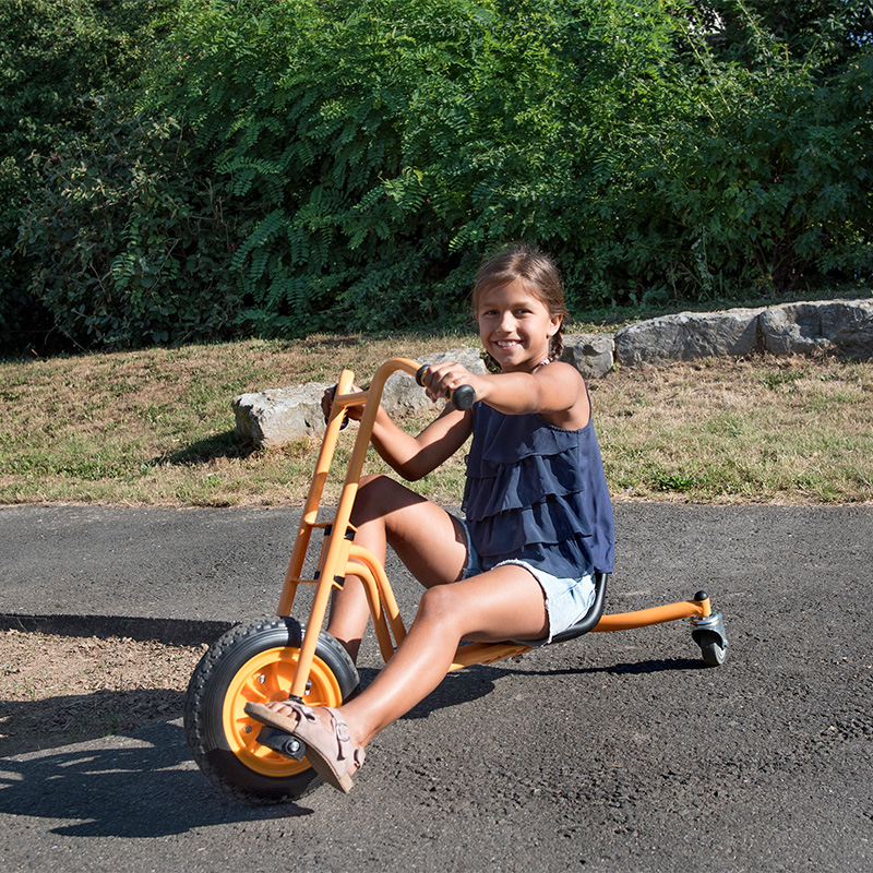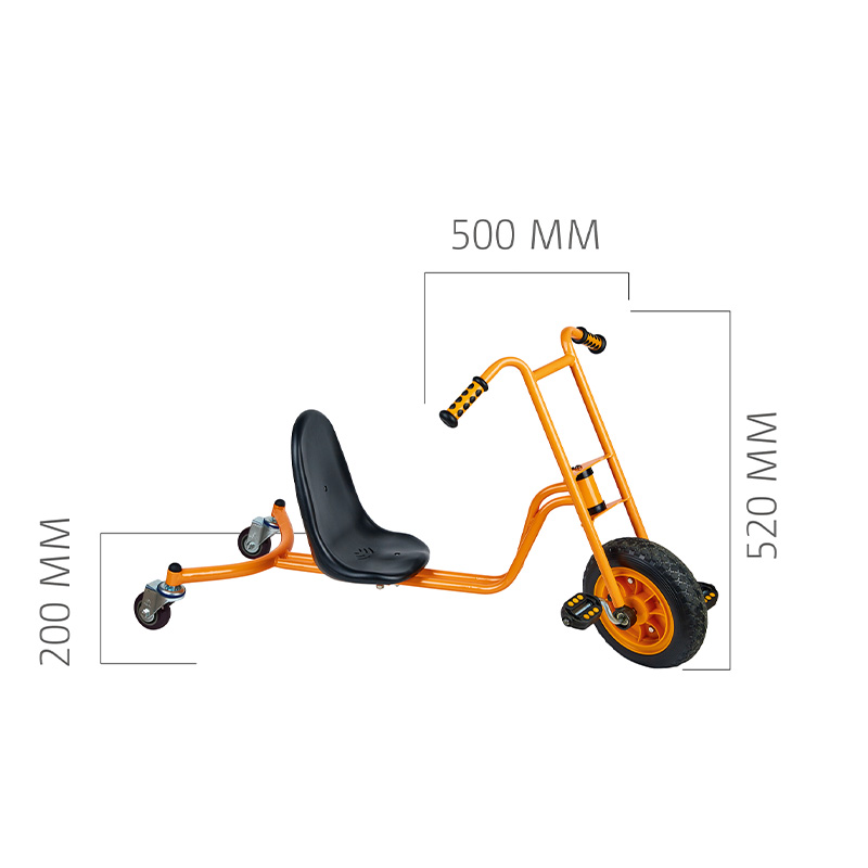 Der Drift Rider ist das ultimative Gefährt für Kinder, die Spaß und Abenteuer lieben. Mit seinem robusten Stahlrahmen und den strapazierfähigen EVA Vollgummirädern ist er perfekt für den Kita aber auch Hort und OGS Alltag geeignet und bietet stundenlangen Fahrspaß. Die beweglichen Hinterräder machen das Fahren besonders spannend und außergewöhnlich. Mit gezieltem Einsatz der Körperspannung und Gewichtsverlagerung können Kurven elegant gemeistert oder das Fahrzeug auf der Stelle gewendet werden.