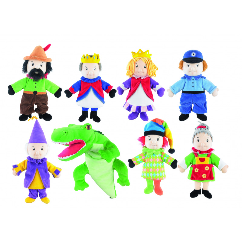 In diesem Set sind acht lustige Handpuppen mit tollen Details. Perfekt für ein Kasperletheater. Ideale Ergänzung auch für unser XL Aktions-Theater.