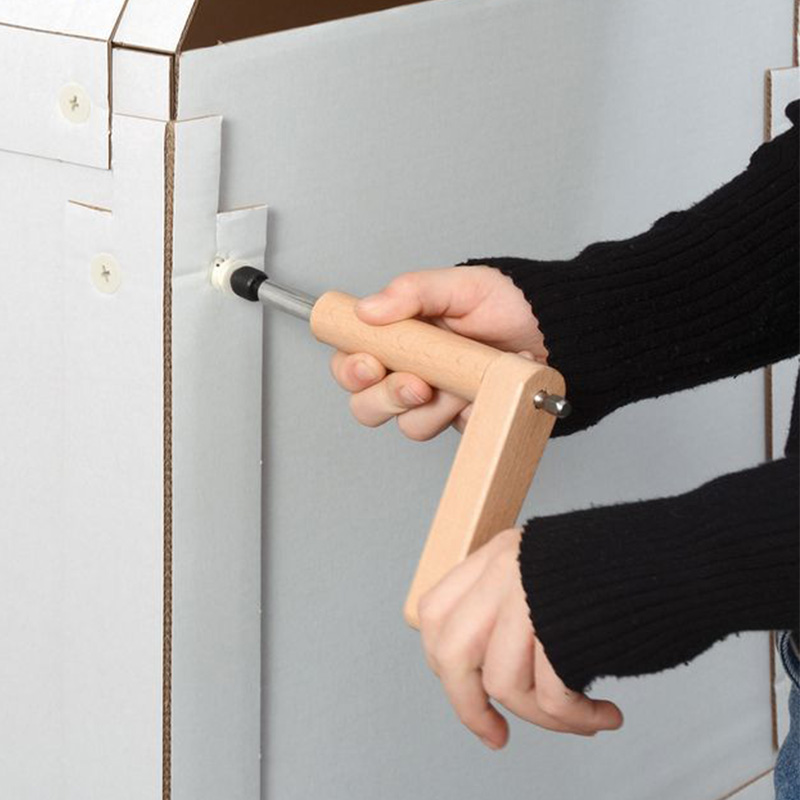 Unser Kartonbohrer schraubt Karton und Pappe zusammen, sodass Kinder fantastische Häuser und Höhlen aus altem Karton erstellen können. Dabei können die Kinder ihrer Fantasie freien Lauf lassen und kreativ werden. Und das Beste daran: Die Schrauben können einfach wieder gelöst werden, sodass die Kinder die Strukturen immer wieder neu gestalten können.