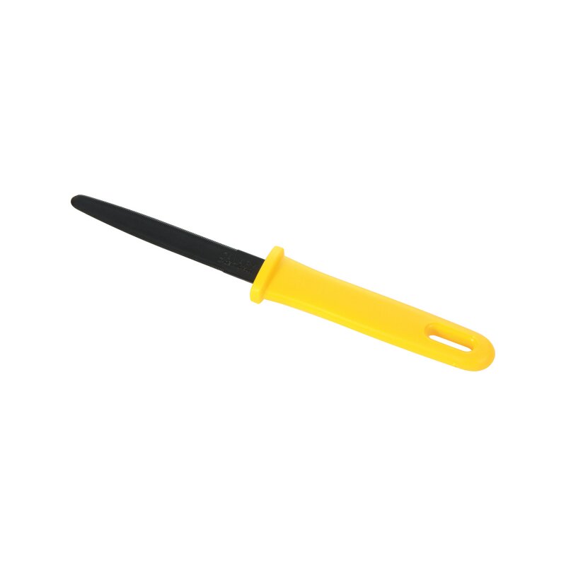 Die Kartonsäge mit doppelschneidiger Klinge ermöglicht es, Karton sicher und präzise zu schneiden, z. B. Türen und kreisförmige Gucklöcher in das Kartonhaus. Dank Beschichtung haften keine Klebebänder an der Klinge. Die feine Sägezahnkante verhindert, dass sich die Klinge im Karton verhakt.