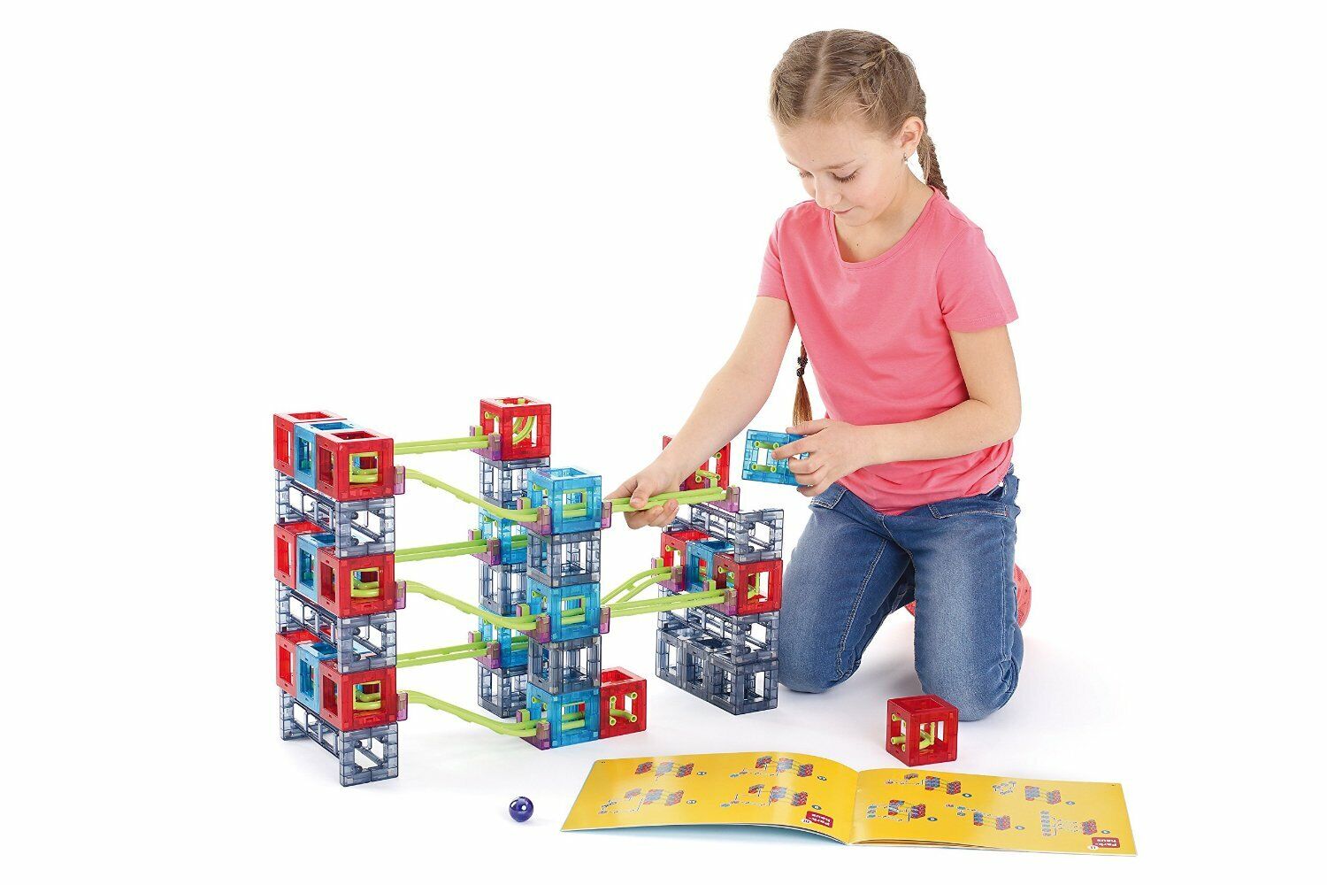 Die Qvolution Magnetmurmelbahn ist perfekt für kleine Baumeister: Sie fördert nicht nur die Kreativität und Fantasie der Kinder, sondern auch ihre Feinmotorik und Hand-Augen-Koordination. Zudem lernen sie durch das Ausprobieren und Experimentieren, wie sich die Murmeln auf den verschiedenen Streckenverläufen bewegen und welche Auswirkungen die unterschiedlichen Bausteine auf die Strecke haben.