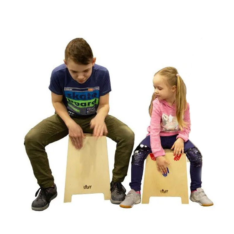 Unsere stapelbaren Trommelhocker bieten Stabilität, großartigen Klang und sind sehr platzsparend. Egal ob im Kindergarten, in der Musikschule oder im Klassenzimmer, dank der stapelbaren Funktion können die Cajons einfach aufeinander gestapelt werden, wodurch überall Platz gespart wird. Die stapelbaren Cajons sind in zwei Sitzhöhen erhältlich: 34 cm für die Kleinen und 45 cm für die Großen. Hergestellt werden die Kisten in Deutschland aus hochwertigem Birkenholz. Im Inneren befindet sich ein fester Snareteppich, der für einen ansprechenden Snaresound sorgt. Darüber hinaus ist auch ein satter Basssound mit dem Hocker garantiert.
